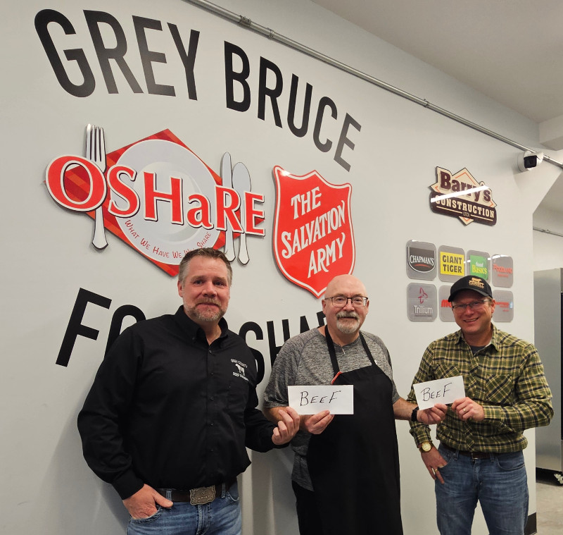 Grey Bruce Food Share, located in Owen Sound, is a collaborative food distribution hub that rescues and redistributes surplus food to more than 25 local food banks and community charities throughout Grey and Bruce counties, and a program of OSHaRE. This donation will help ensure that high-quality, nutritious beef is available to food banks and community meal programs at a time of year when the need is especially high.