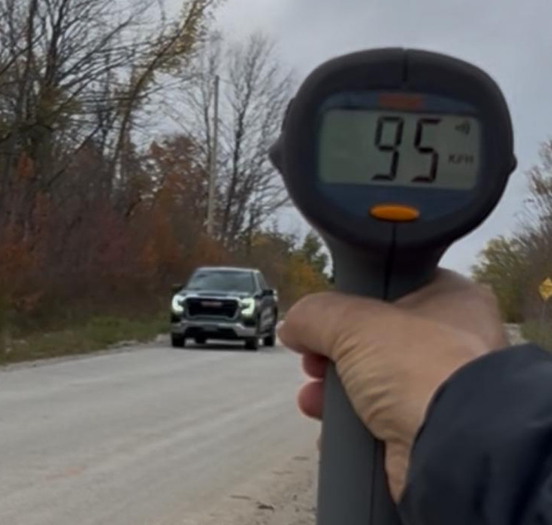The Saseks have also submitted a number of photos showing radar readings of vehicles travelling on the road as fast as 100 km/hr.