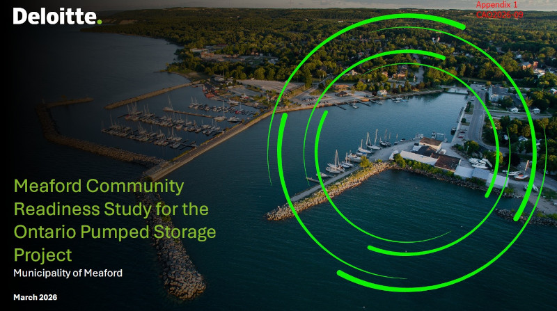 A 48-page report was presented to council during a special meeting held on the morning of Monday, April 27. Included in the report was a study undertaken by consulting company Deloitte entitled Meaford Community Readiness Study for the Ontario Pumped Storage Project.