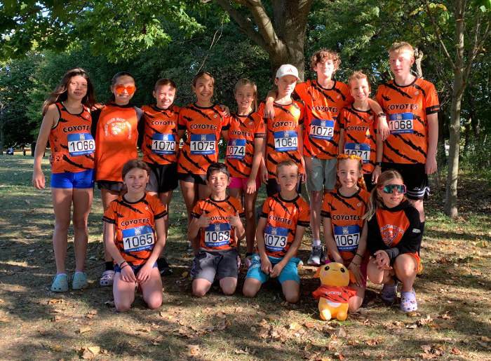 On Sunday, October 5, fourteen Georgian Bay Coyotes runners headed to Niagara Falls to take part in the Thorold Elite XC Prep Meet, held at Firemen’s Park. The weather was warm and dry—rather atypical for a cross-country meet—and the athletes were in good spirits. They enjoyed the walk-through portion of the morning, eyeing up the course and soaking up the sunshine with teammates.