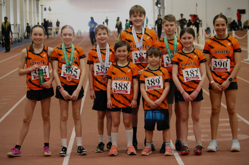 On Sunday, March 15, nine young Georgian Bay Coyotes travelled to the Toronto Track and Field Centre at York University to take part in the United Tamil Sports Club 20th Year Jubilee Meet. Over 580 athletes from 49 different track clubs across Ontario participated in this prep meet, and it was a great opportunity for our local athletes to test their training before the MTA Provincial Championships in just under a month’s time.
