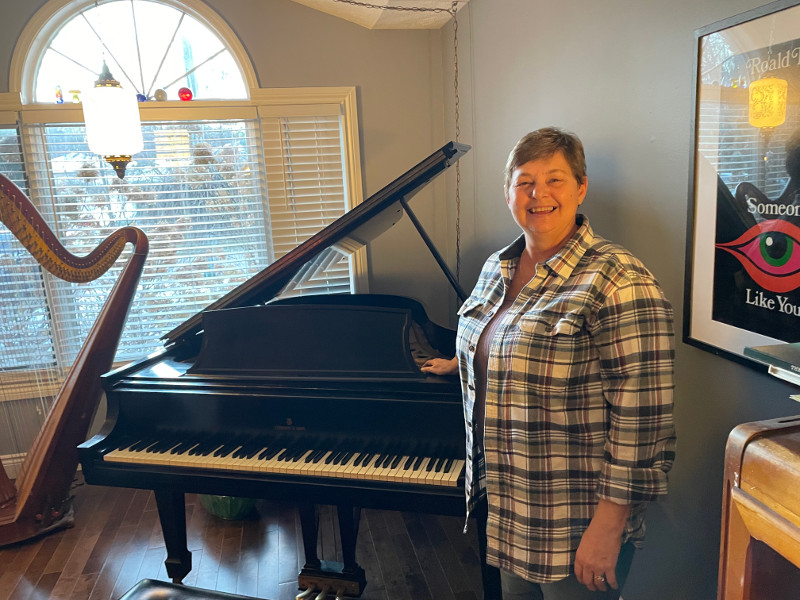 Cheryl Ross has been the Director of the Goldenaires since 2022, after it had to be paused during Covid. Her work and dedication to the choir is remarkable, and it’s a delight to see her in action, conducting the many voices that make up the Goldenaires. In addition to all the very talented singers, there are three local piano accompanists – Helen Crowston, Jean Hudson, and myself, Sarah Patrick.