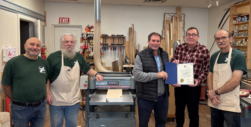 On Friday, November 28, MPP Paul Vickers met with the Board and members of Intersections Wood Collaborative (IWC) to hear more about the $17,300 Capital grant from the provincial government’s Ontario Trillium Foundation (OTF). The six-month OTF grant, which was awarded earlier this year, was used to buy new woodworking equipment and improve the ability to serve citizens of Grey and Bruce.